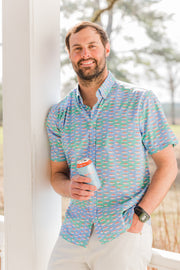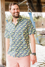The Tailored Fit. Short Sleeve Button Down. Single Pocket. Southern Proper embroidered tag on bottom hem. 100% Cotton